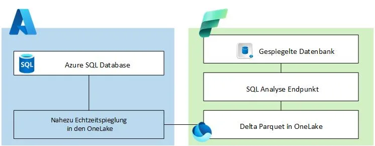 Fabric Databases ist de facto ein Azure SQL Server, der ohne weitere Lizenz in Fabric funktioniert. Wie im Bild zu sehen ist, läuft Fabric Databases als Azure SQL Server außerhalb von Fabric und wird dann nahezu in Echtzeit in den OneLake gespiegelt. Für den OneLake werden die Daten in Delta Parquet Files kopiert. Wichtig ist, dass keine zusätzlichen Lizenzen benötigt werden.